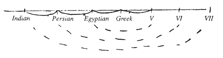 [ 4 ] Science in the modern sense did not yet exist in the earliest times of our culture. Only gradually did the human being become a seeker in that science which can independently research the external world independently. For this reason something like science has only existed since Thales.3Thales of Miletus, (ca. 625–ca. 545 B.C.) was a Greek philosopher, one of the “seven wise men,” and one of the founders of philosophy It is an abstraction to speak of “oriental philosophy.” Those who began science with Thales were right: before them science was always inspired, born out of the mysteries. That was the case with Heraclitus,4Heraclitus of Ephesus, (ca. 540 {544} – 480 {483 s.c.} was a Greek philosopher. who was still inspired by ancient mystery wisdom. We are told that he placed his book on the altar of the goddess of Ephesus.