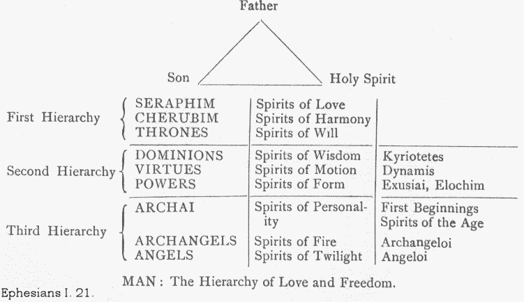 [ 6 ] All these Hierarchies are continually in some sort of connection with us, although not in such close, directly perceptible connection as the lower Hierarchies. We will try by an example to show how these work into our earthly evolution, but in order to do this it will be necessary first to consider the evolution of the Angels, Archangels, and Archai. These Beings are all greater than the man of today, but in the next incarnation of the Earth, which we call the Jupiter condition, he will be as great as the Angels are now; and he will continually expand to ever greater degrees of perfection. This is also the case as regards the evolution of the other Beings; they were not always what they are now, they also have passed through lower stages of development. Take for example the Angels. In earlier times these passed through their human stage as we are now doing on earth; this was on the Ancient Moon, and it was because of the work they carried out upon themselves at that time that they have become the higher Beings they are now. In the same way Archangels passed through their human stage on the Ancient Sun; at that time they were Beings like us; today they have advanced two stages above us. The Archai had their human stage upon Ancient Saturn. They were one stage higher than the Beings who passed through their humanity on the Sun, and about three stages higher than man is today.