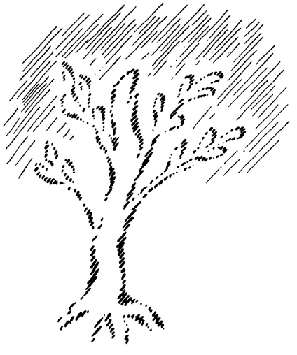 I gave you this as an example to show that even in such external, purely formal matters, the so-called cause need have nothing to do with the so-called effect. This whole consideration of cause and effect comes only from abstraction. To speak of cause and effect is only possible within certain limits. Suppose you have a tree here with its roots here. Now, what goes on in the roots can certainly be called the cause of what grows there; what goes on in the branches can, with a certain right, be called the cause of what goes on in the leaves. The tree is, in a certain sense, a whole; and the concrete view of life focuses on totalities, on the whole; the abstract view of life always connects one thing to another without asking: where is the finished whole? For the spiritual view of life, however, it is important to become aware of a wholeness. For you see, where the outermost leaves are, there the tree ceases to have internal causes for what is happening there. Where the leaves cease, the causative forces also cease. But where the causative forces cease, something else intervenes. Here, where the causal forces cease, if you look spiritually, you see the tree surrounded by spiritual essence, by spiritual elemental beings. Here, if I may say so, a negative tree begins, extending into infinity — only seemingly into infinity, for after a while it loses itself. The growth of the tree is met by an elemental existence, and where the tree ends, it comes into contact with an elemental existence growing towards it (see drawing on p. 66). This is how it is in nature. The plant, as it shoots out of the ground, comes to an end. The causes cease where the plant ceases. But contrary to this, an elemental existence grows into the plant from the universe.