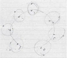 The second drawing showed two superimposed figure eights rotated 90 degrees around each other, which were to be walked by several people at the same time. "But you have to be careful to pass each other easily in the middle. You have to start a little bit after each other so that only two are in the middle at a time.“