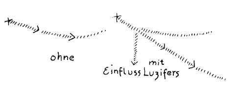 Wenn wir uns ein graphisches Bild von dem machen wollen, was in der alten lemurischen Zeit für die Erdentwickelung des Menschen geschehen ist, so können wir sagen: Der Mensch ist dazumal heruntergestiegen von göttlichen Höhen; es war ihm bestimmt in einer gewissen Weise sich weiter zu entwickeln; aber durch den luziferischen Einfluß wurde der Mensch tiefer in die Materie hineingeworfen, als es ohne denselben der Fall gewesen wäre. Dadurch wurde sein Fortgang in der Entwickelung nun ein anderer.